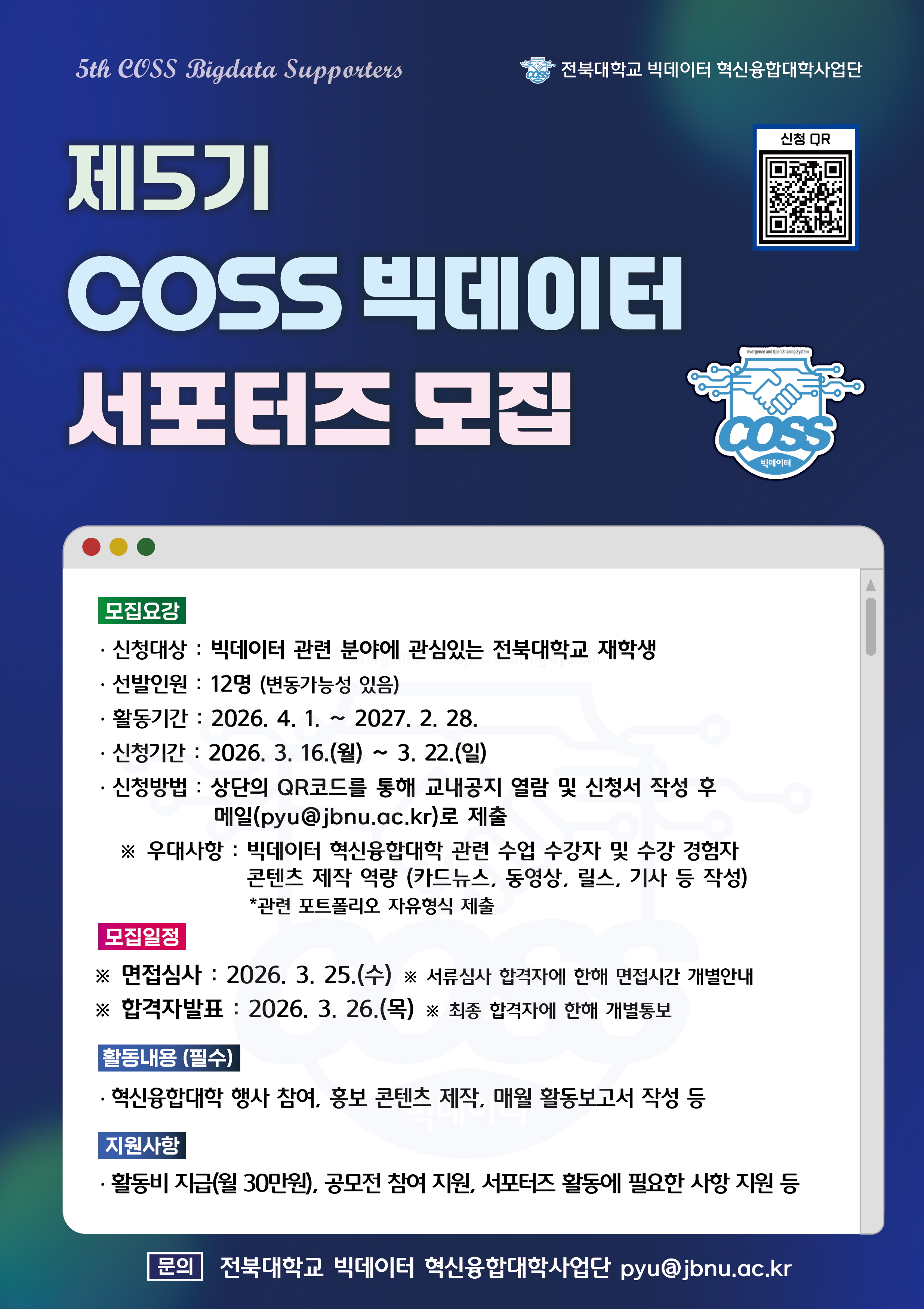 2026년 제5기 COSS 빅데이터 서포터즈로 활동할 학생들을 모집합니다 :)