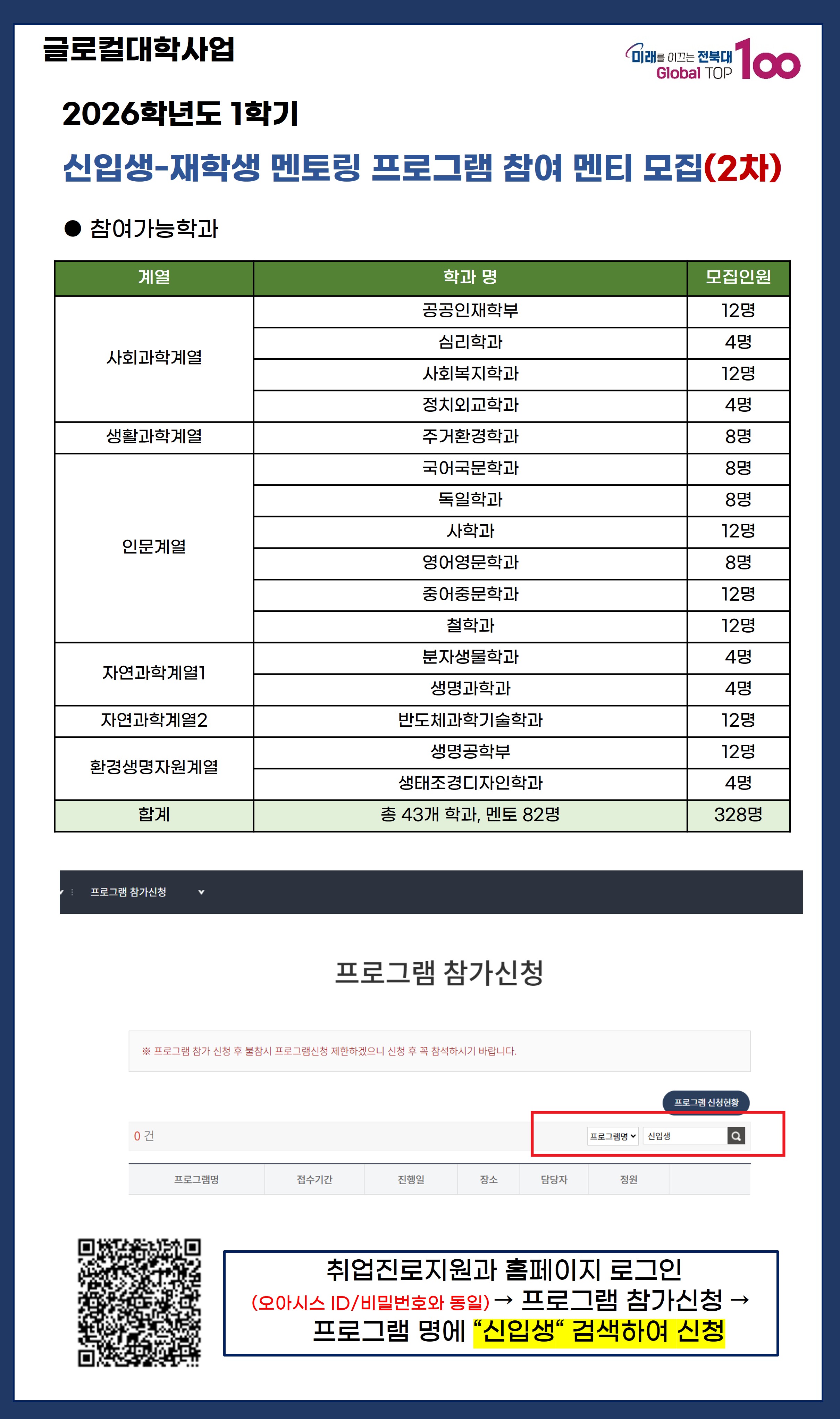 → 프로그램 → 프로그램 참가신청 → 멘토링 희망 학과 신청