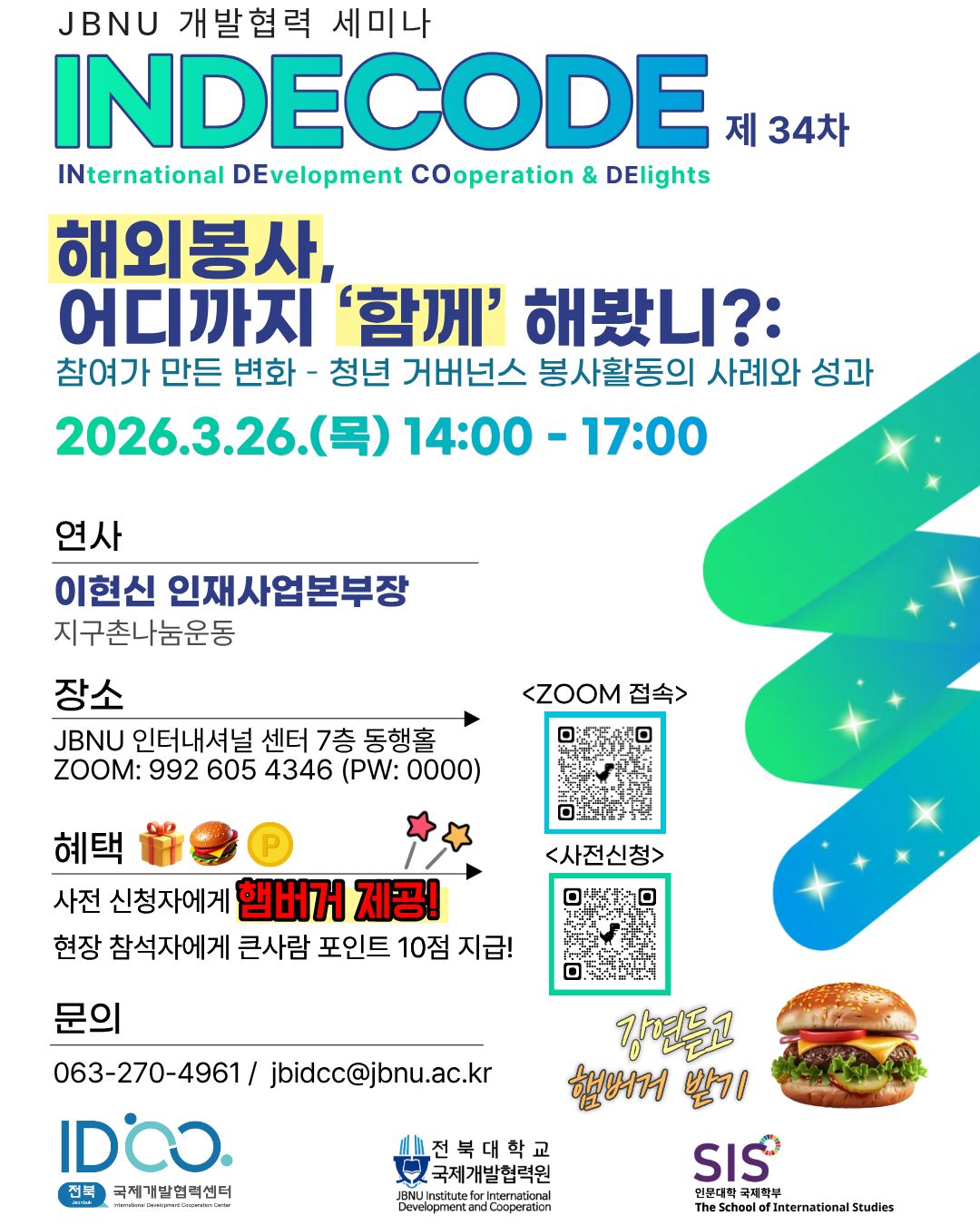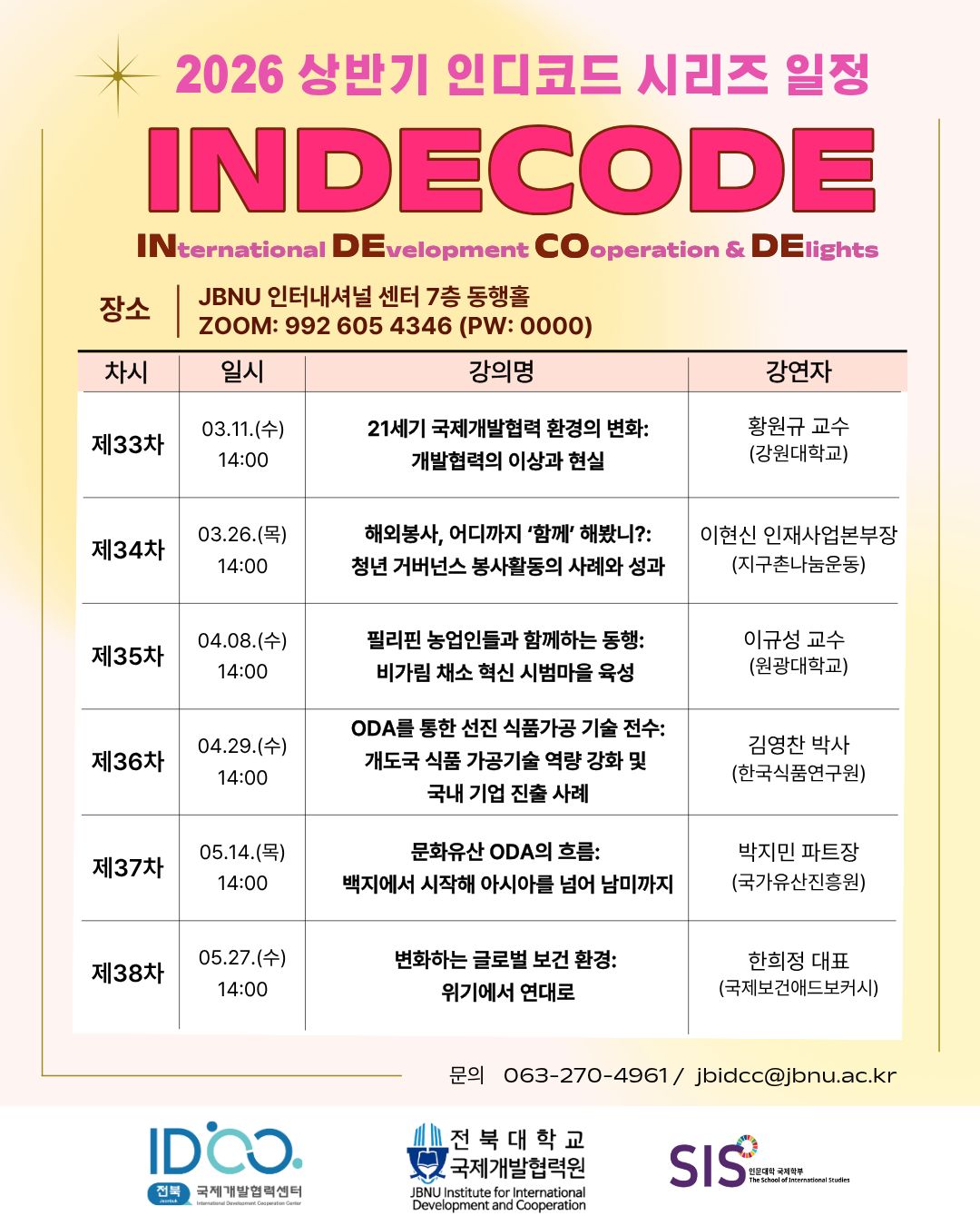 ⭐JBNU 개발협력 세미나 시리즈: 인디코드(International Development Cooperation & Delights)⭐