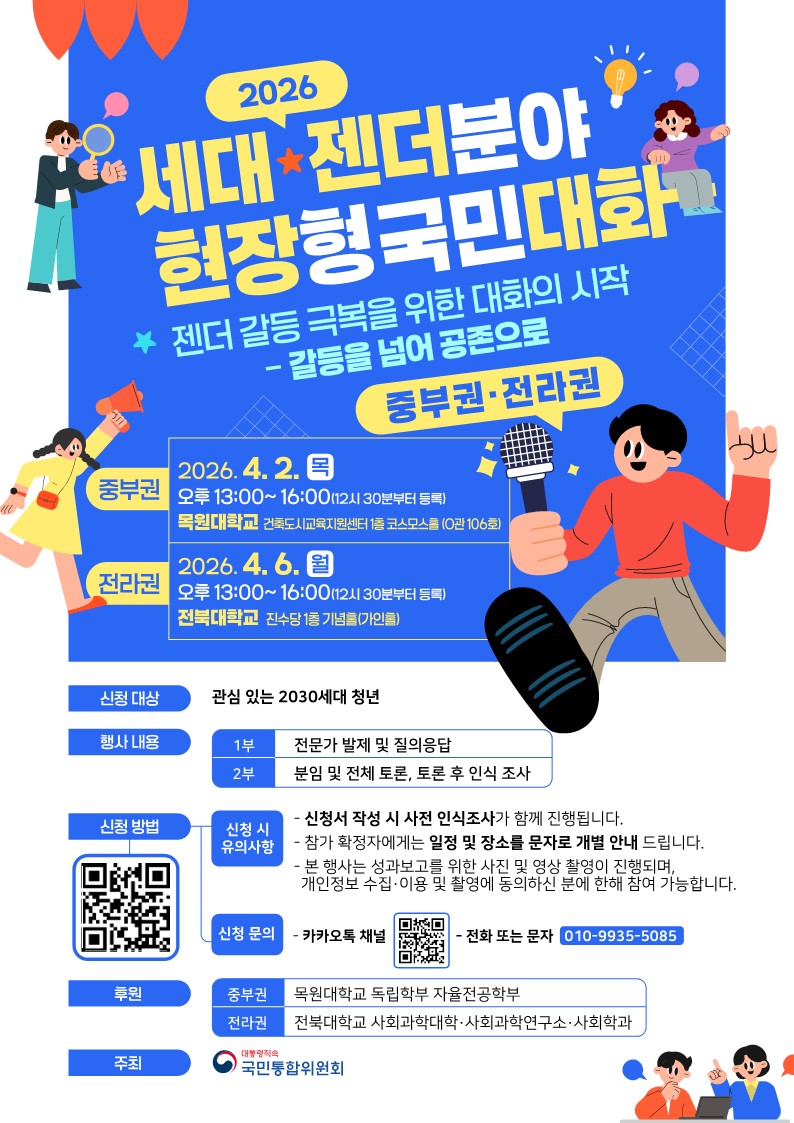 (국민통합위원회) 「2026 세대·젠더분야 권역별 현장형 국민대화」 참여 안내