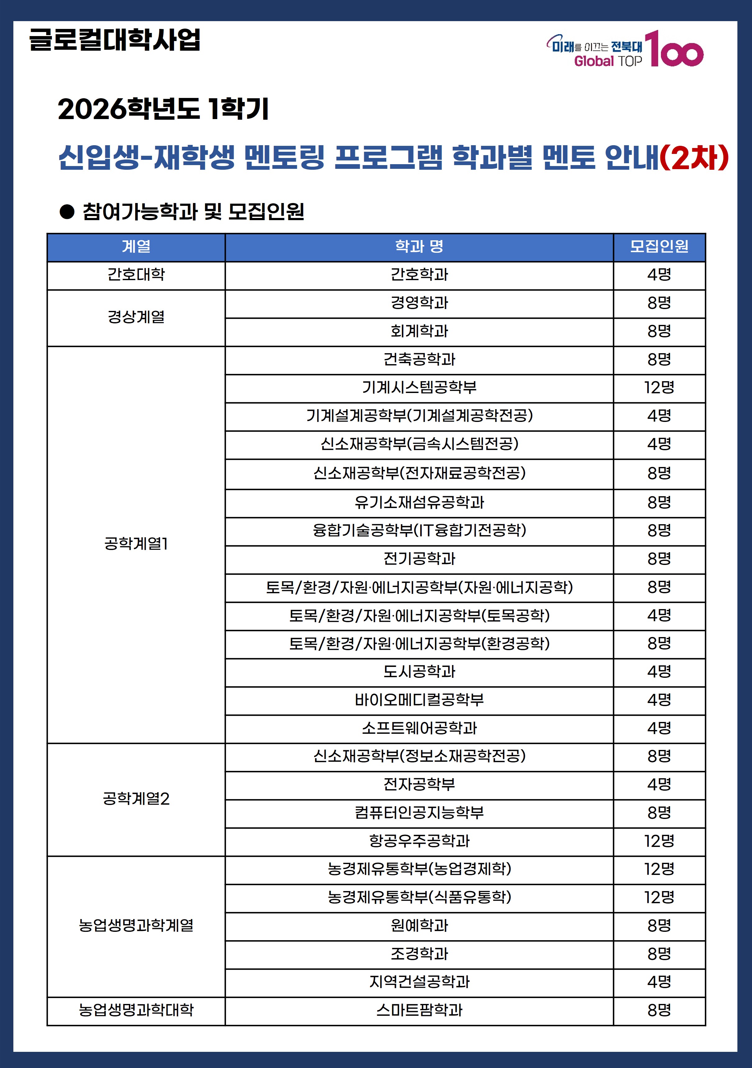 본 프로그램은 2026학년도 광역화 모집 대상 신입생에게 전공 탐색 기회를 제공하기 위해 개설된 멘토링 프로그램입니다.