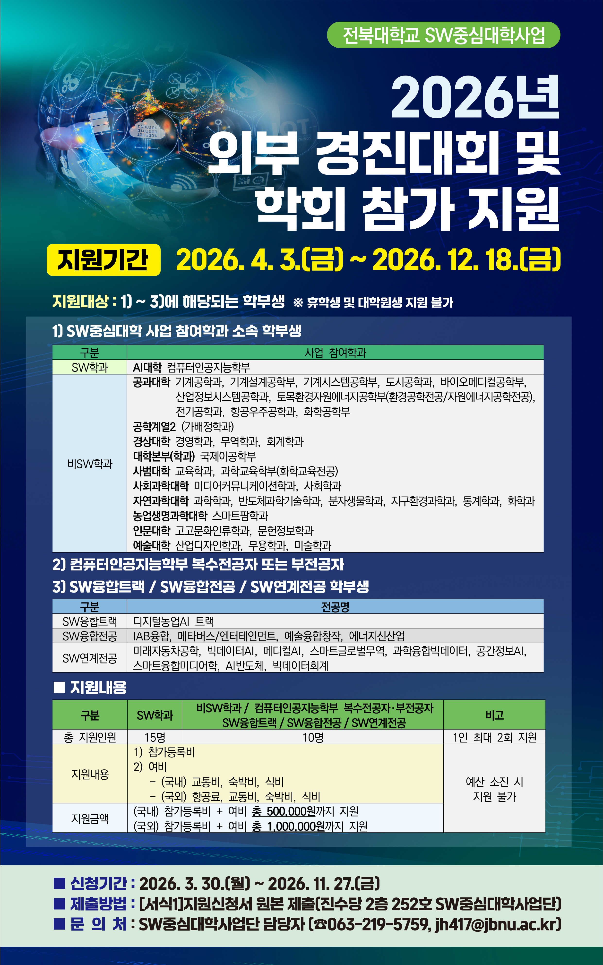[SW중심대학사업단] 2026년 외부 경진대회 및 학회 참가 지원 안내