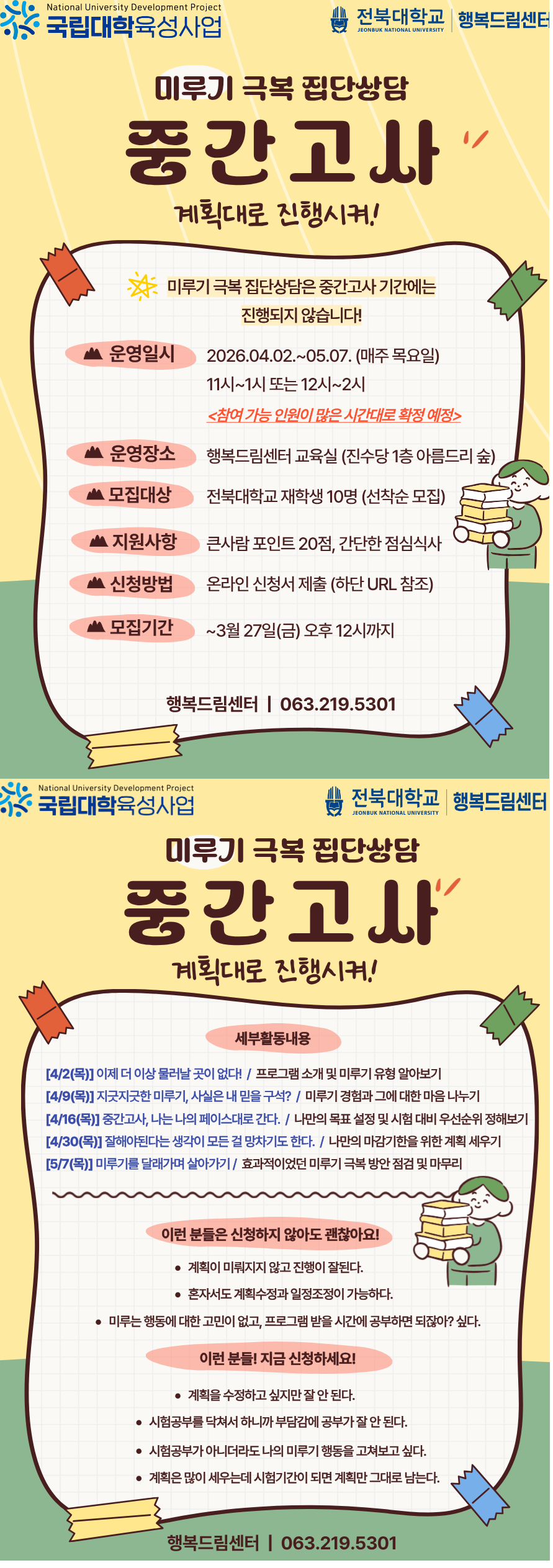 - 대 상 : 전북대학교 재학생 10명 (선착순 접수)