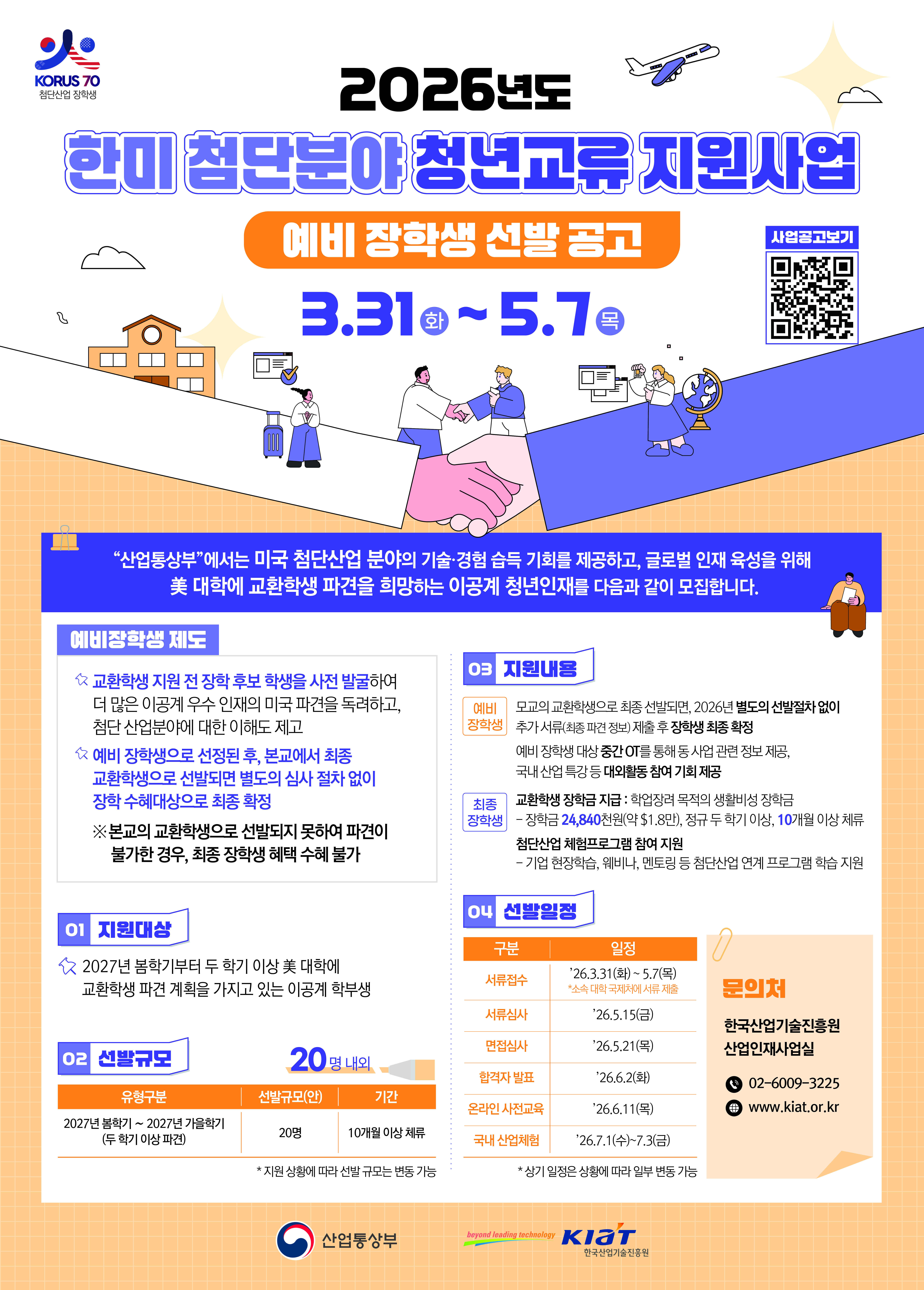 2026년 한미 첨단분야 청년교류 지원사업 예비 장학생 선발 공고 (한국산업기술진흥원)
