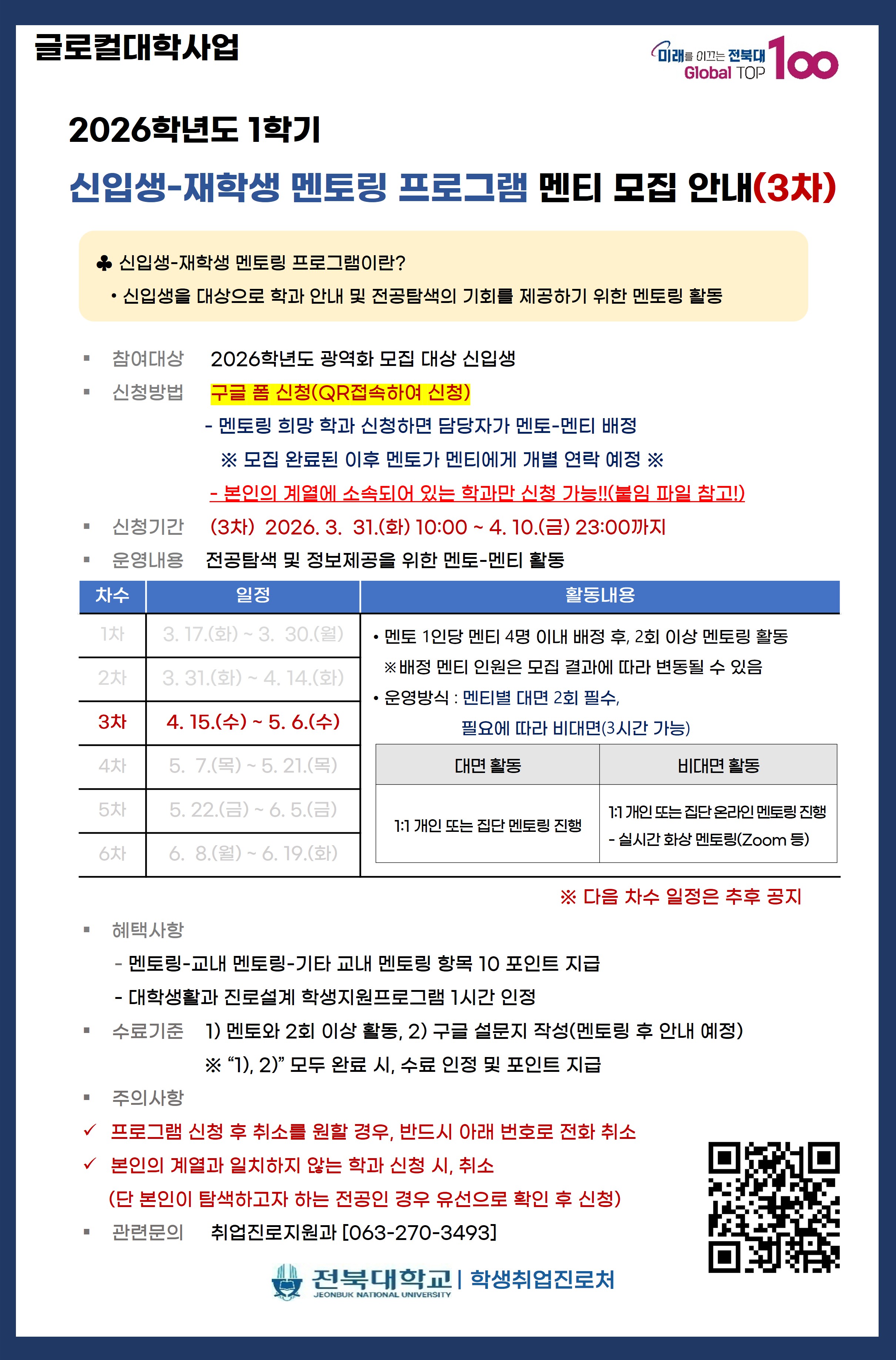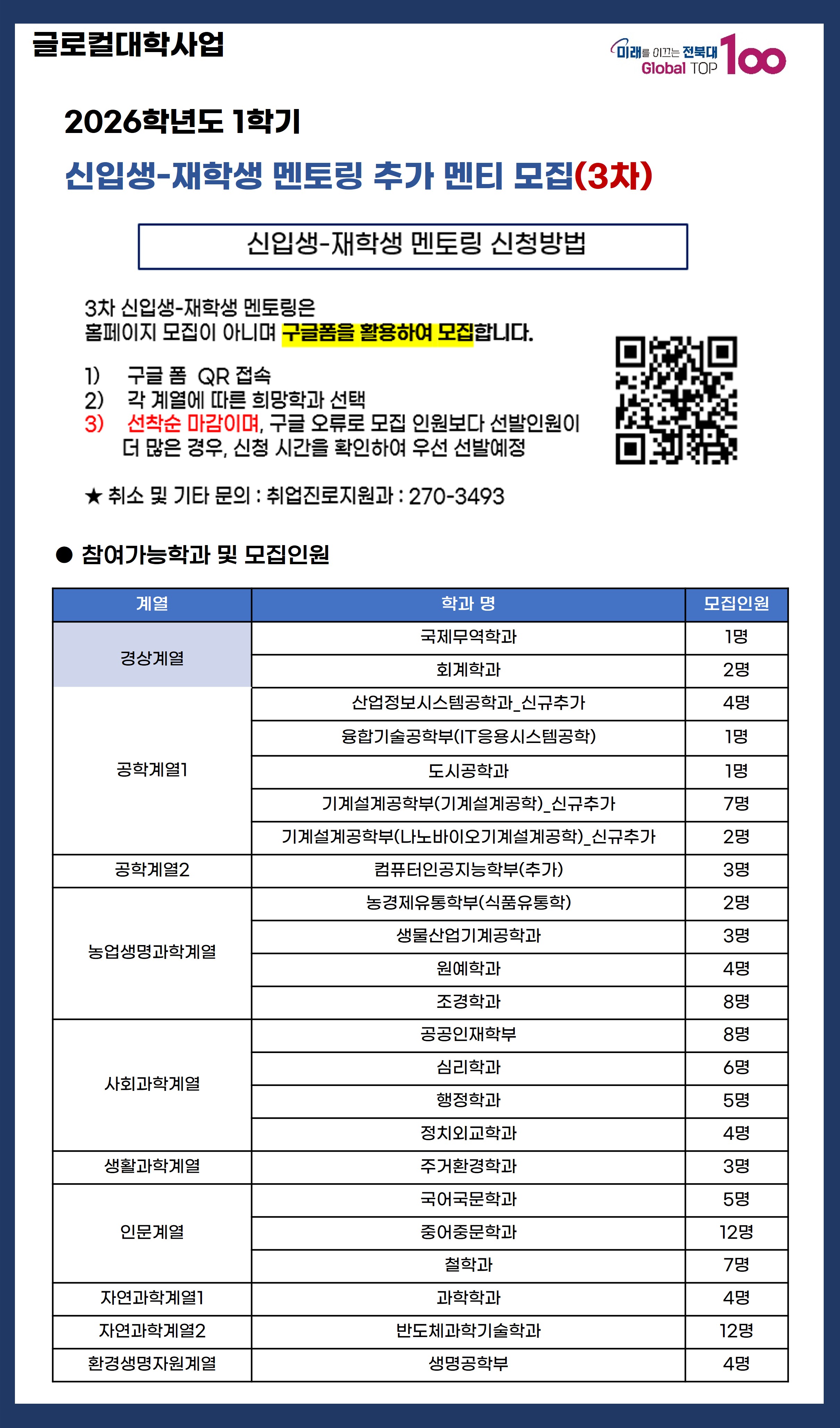 (추가모집) 신입생-재학생 멘토링 3차 추가 멘티 모집
