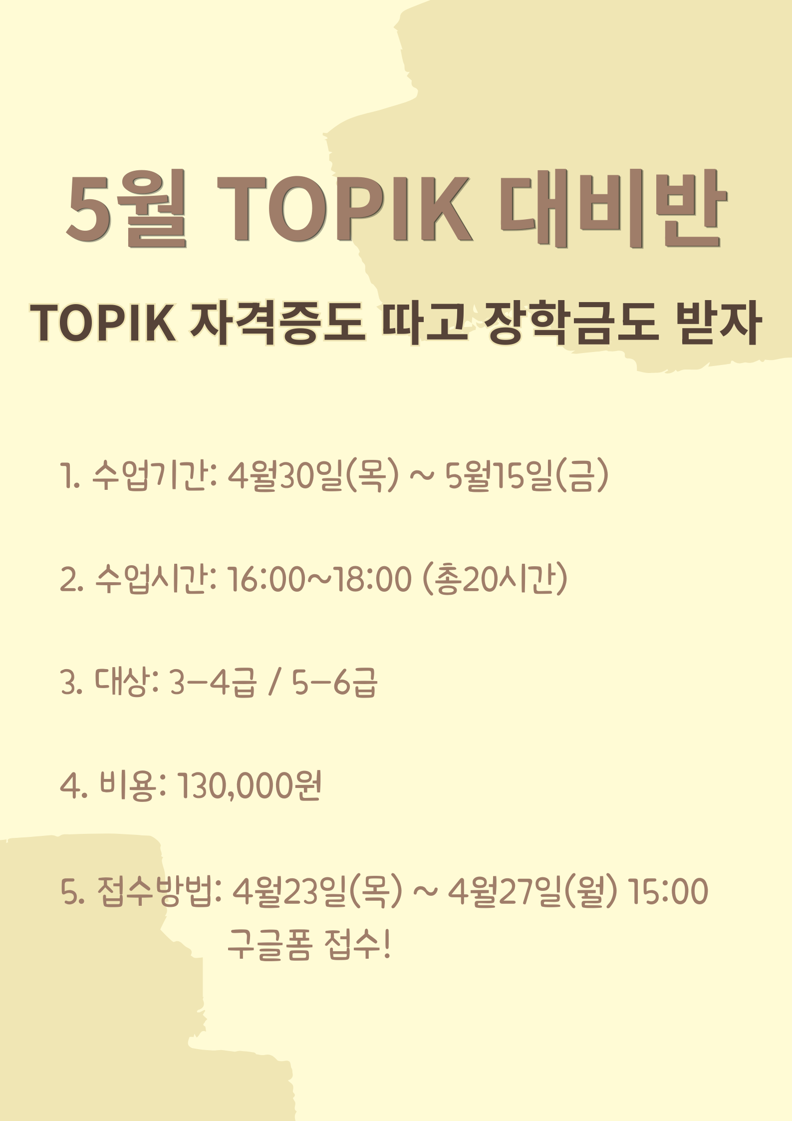 5์›” TOPIK ๋Œ€๋น„๋ฐ˜ ๋ชจ์ง‘