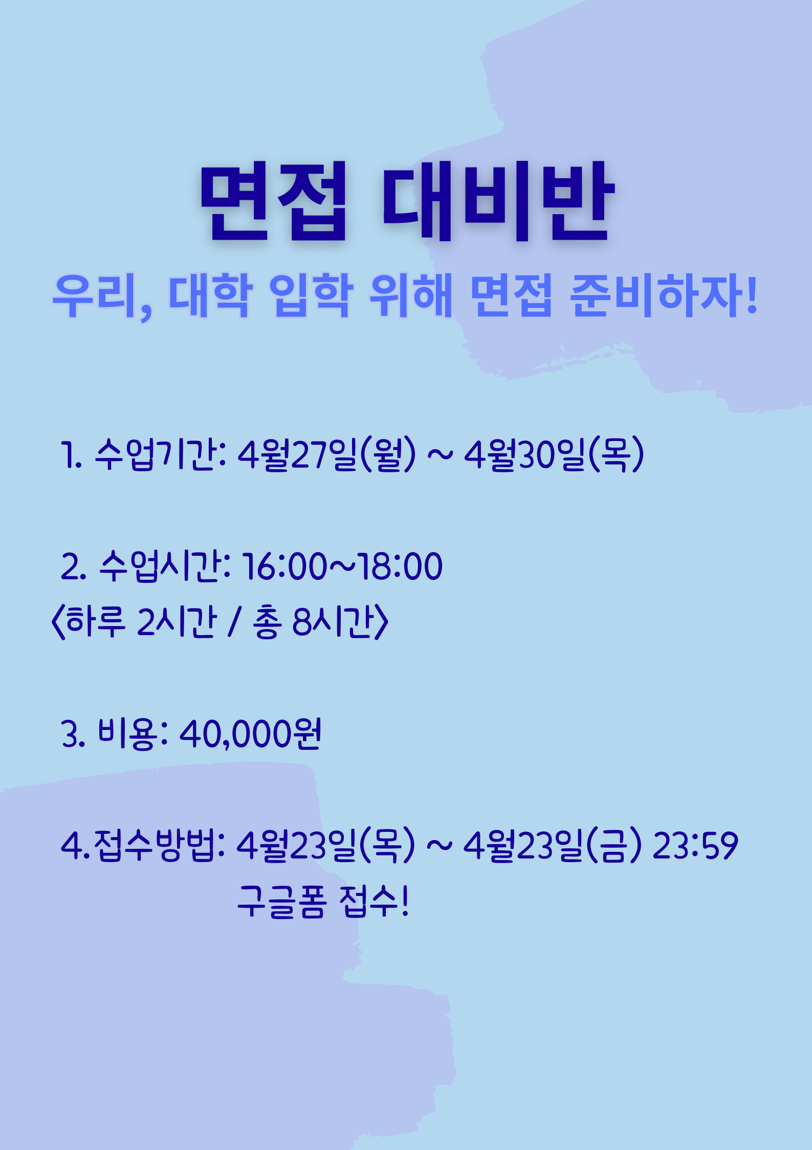 ○ 수업 시간 : 16:00~18:00 <하루 2시간 / 총 8시간>