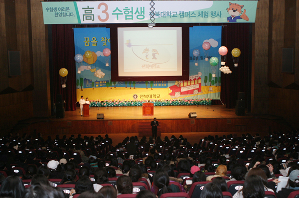 우리 대학은 12월 5일과 7일, 8일 3일간 전북대학교 삼성문화회관에서 도내 고등학교 3학년 수험생을 대상으로 입시설명회를 개최하고 있다. 2006학년도 대학의 입시홍보를 비롯해 대학 소개와 우수 신입생 유치를 위한 대학의 비전제시 등이 펼쳐진다.
