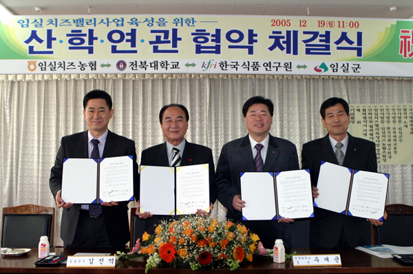 우리 대학과 임실군, 임실치즈농협, 한국식품연구원은 19일 오전 11시 임실군청 회의실에서 임실치즈밸리 조성사업의 성공적인 추진을 위한 산·학·연·관 협력에 대한 협약을 체결하였다.