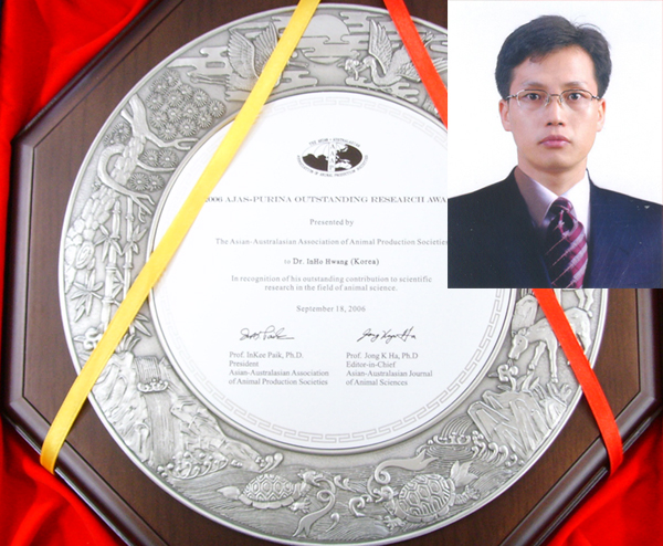 농업생명과학대학 동물자원과학과 황인호 교수가 지난 9월 18일부터 22일까지 부산 Bexco에서 열린 아세아-태평양 축산학회에서 "Outstanding Research Award"을 수상했다.