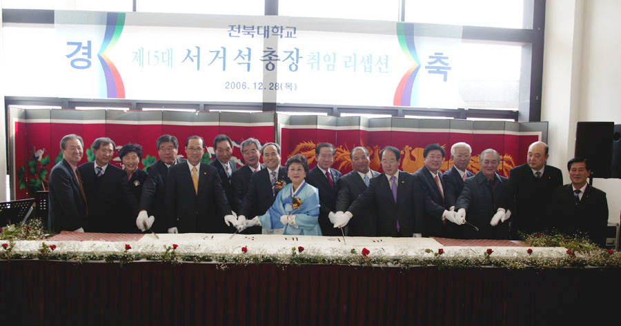 우리 대학 제15대 서거석 총장 취임식이 28일 오후 2시 전북대 삼성문화회관에서 성황리에 개최되었다. 이날 취임식에는 김완주 전라북도지사, 강정채 전남대 총장, 차종선 전북대 동창회장, 나용호 원광대 총장, 이희연 군산대 총장, 김영석 우석대 총장, 전기준 경북대 대학원장, 장만채 순천대 총장 및 주요대학 총장이 참석하였다.
