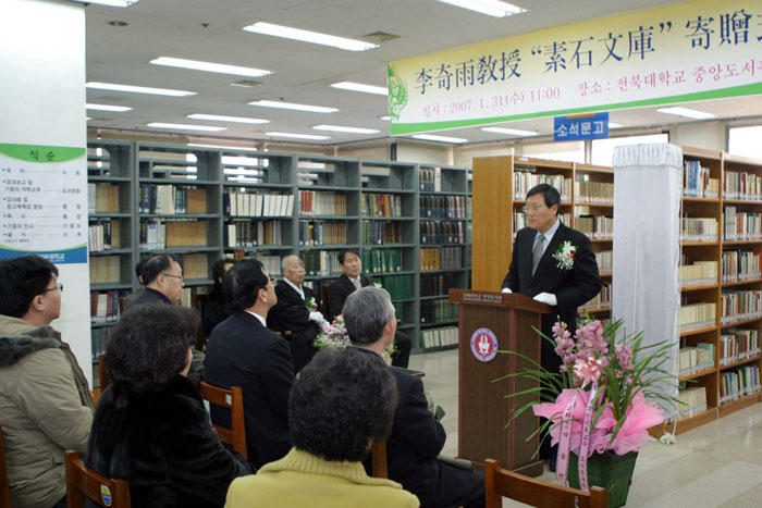 이기우 명예교수는 지난 1992년, 34년간의 강단 생활을 접고 퇴임하였으며 지난해에 대학 도서관에 장서를 기증하였다. 이교수는 “전북대에 근무하면서 모아둔 책을 이제 후학들을 위해 기증할 때가 됐다고 생각했다”며 “후학들의 학업 정진에 보탬이 됐으면 좋겠다.”고 말했다.