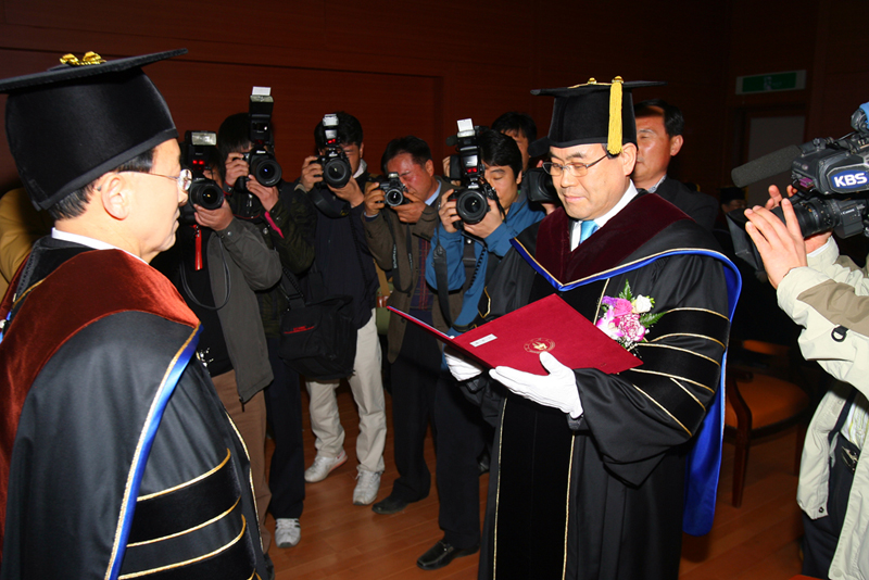 서거석 총장은 “2만3천 가족과 14만 동문, 200만 전북 도민의 뜻을 모아 명예경제학박사 학위를 수여하게 되었다. 오늘의 명예박사학위는 후학들에게 지역 사랑의 소중한 교훈과 가르침을 주는 계기가 될 것이며 세계로 도약하는 우리 대학에 큰 힘이 될 것이라 여긴다”며 우리 대학의 발전을 위해 끊임없는 관심과 애정을 부탁하였다.