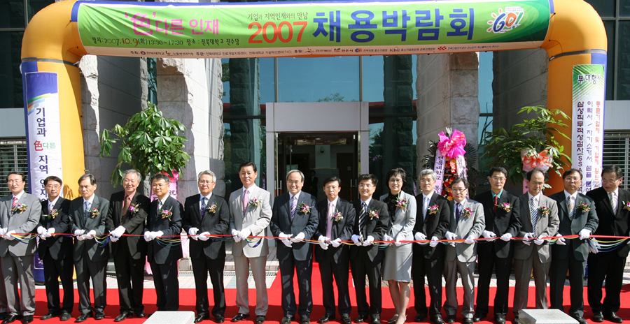 『'色‘다른 인재』 기업과 지역인재와의 만남을 주제로 한 우리 대학 2007 채용박람회가 10월 9일(화) 오후 진수당에서 서거석 총장, 박영호 노동부 전주지청장과 참여기업 CEO 및 대학 관계자와 2,000여명의 학생이 참가하여 성황을 이루었다.