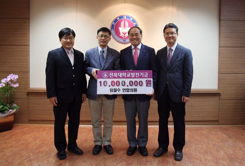 임 동문은 5월 20일 오후 5시 30분 서거석 총장을 찾아 모교의 경쟁력 향상을 위한 곳에 써달라며 발전기금을 기탁했다.