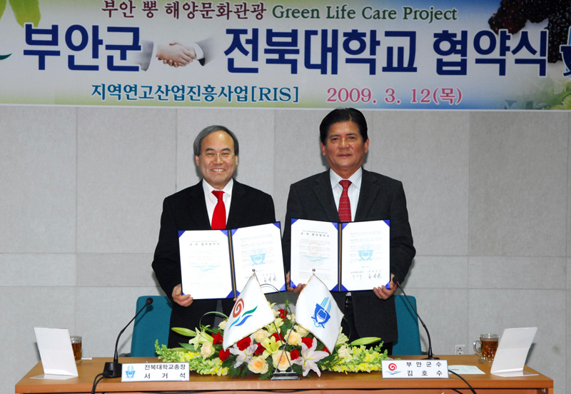 우리 대학과 부안군이 협력 추진 중인 부안뽕 해양문화관광 Green Life Care Project(녹색성장 프로젝트)'사업이2009년 지역연고산업육성사업(사업단장 이양수 교수·이하 RIS사업)에 선정돼 부안뽕 신활력사업이 탄력을 받게 됐다.