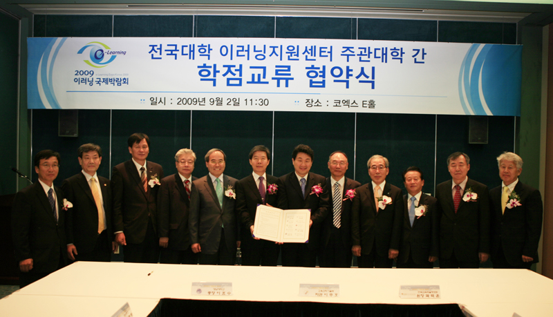 서거석 총장은 9월 2일 서울 코엑스에서 개막한 ‘2009 이러닝 국제박람회’에 참가해 전남대ㆍ강원대ㆍ경상대ㆍ인하대ㆍ영남대ㆍ제주대ㆍ청주대ㆍ충남대ㆍ한양대 등 전국 10개 이러닝지원센터 주관대학들과 학점 및 콘텐츠 교류 협약을 체결했다.