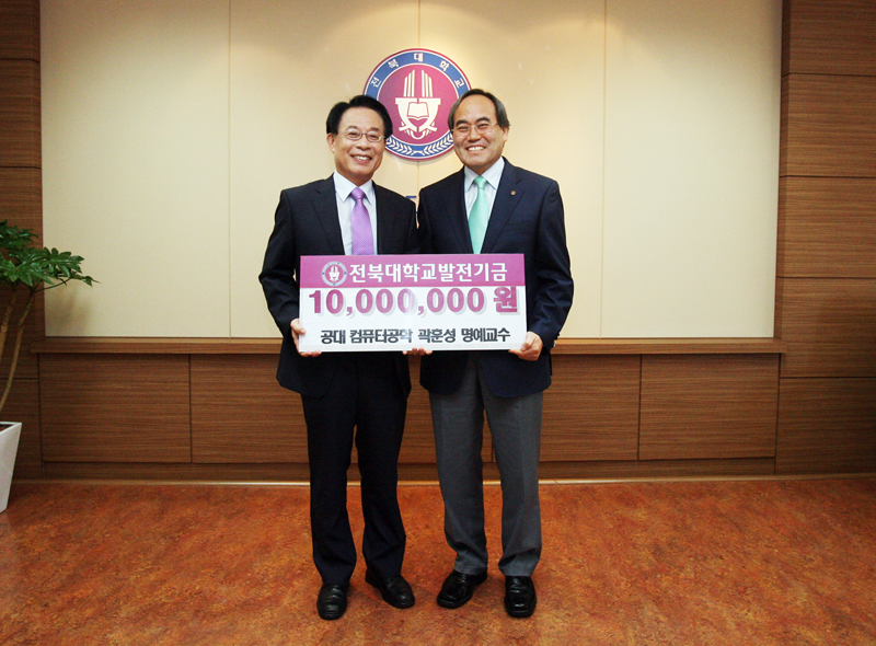 곽 교수는 지난 9월 10일 오전 11시 30분 서거석 총장을 찾아 1천만 원의 발전기금을 쾌척했다.