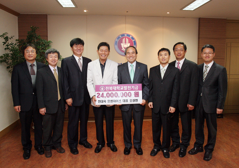 전국적으로 인지도가 높은 전주콩나물국밥의 맛을 이어오고 있는 현대옥 프렌차이즈의 오상현 대표가 10월 27일 오전 10시 우리 대학 학생들을 위한 장학금 2천400만원을 기탁했다.