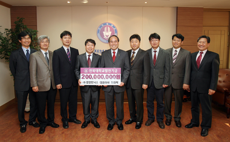 정 대표는 “개인 사정으로 인해 치의학과에서 과정 이수를 못했지만, 사업을 해오며 늘 모교처럼 전북대를 생각해 대학과 후배들을 위한 작은 일을 하고 싶었다”며 “세계 속의 대학으로 발전하고 있는 우리 대학의 발전에 조금이나마 힘이 되길 바란다”고 말했다.