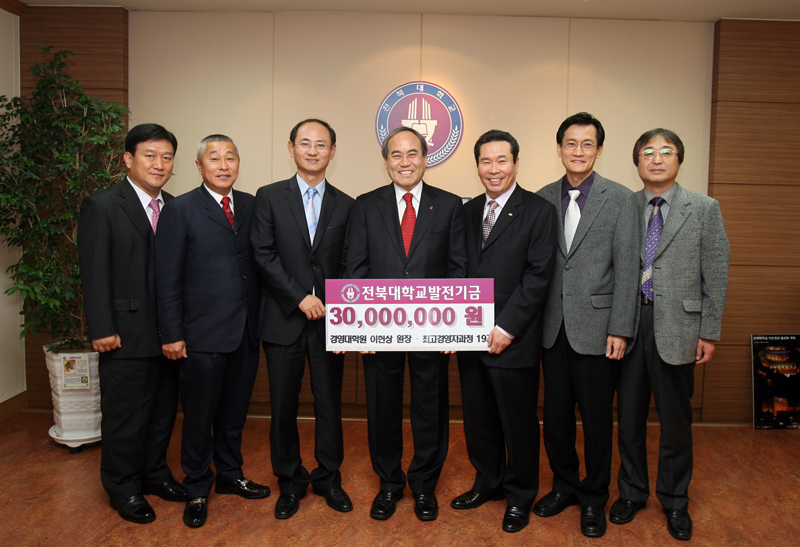 이헌상 원장은 “경영대학원 최고 경영자과정 19기 임원들과 함께 세계 속으로 성장해 나가는 우리 대학의 발전을 위해 작지만 소중한 마음을 모았다”며 “이 작은 정성이 전북대학교의 발전의 위해 소중하게 쓰여지길 바란다”고 말했다.