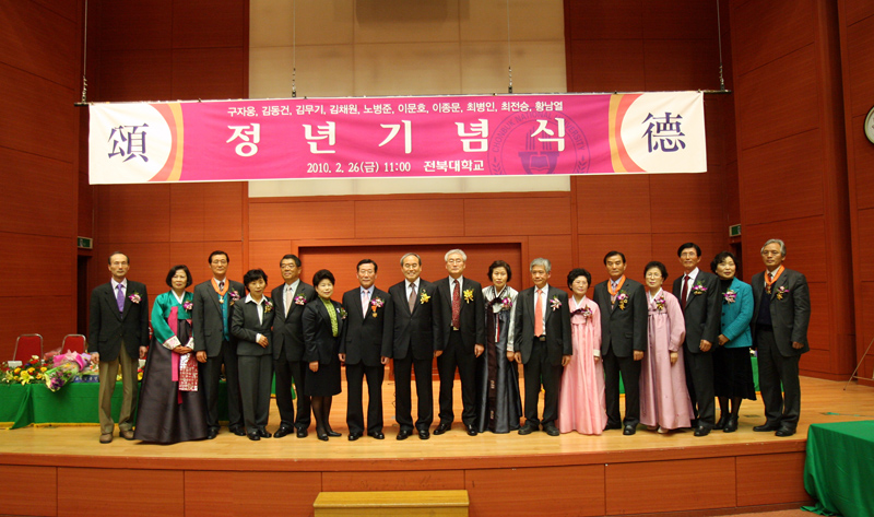 이번에 정년을 맞은 교수는 공대 기계시스템공학부 노병준ㆍ최병인 교수와 고분자ㆍ나노공학과 이종문 교수, 기계설계공학부 김채원 교수, 신소재공학부 김동건 교수, 전기전자컴퓨터공학부 이문호 교수, 농생대 생물환경화학과 김무기 교수, 지역건설공학과 구자웅 교수, 사범대 국어교육과 최전승 교수, 환생대 한약자원학과 황남열 교수 등 10명.