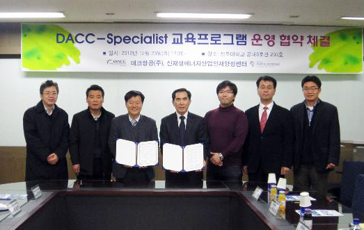 양 기관은 지난 12월 23일 설경원 센터장과 나덕주 데크항공 사장 등 양 기관 관계자들이 참석한 가운데 양 기관이 함께하는 인력양성 프로그램인 ‘DACC-Specialist 교육프로그램’을 운영하기로 했다.