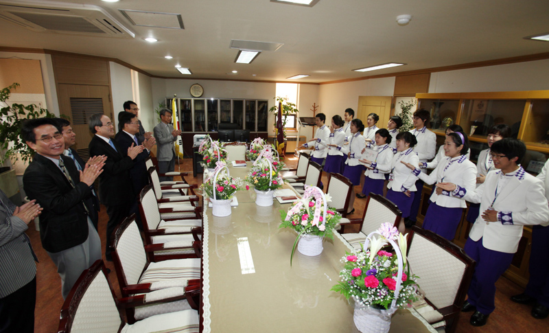 이어 이들은 서거석 총장과 본부 보직교수들을 찾아 감사의 꽃바구니를 전달했고, 그동안 연습했던 스승의 은혜의 노래와 한 명 한 명 손수 쓴 편지를 통해 감사의 마음을 전했다.