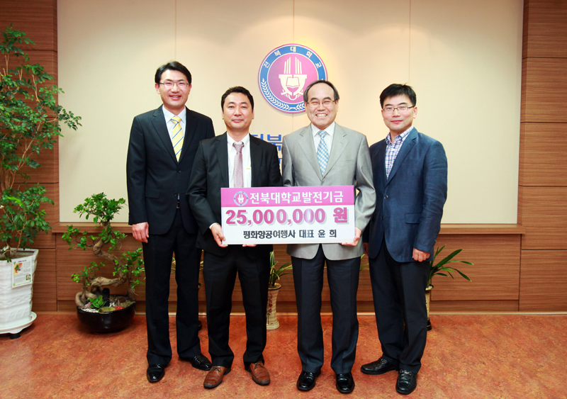 전주 서노송동에 위치한 평화항공여행사 윤희 대표가 우리대학의 대학경쟁력향상을 위한 발전기금 2천500만원을 기탁했다.