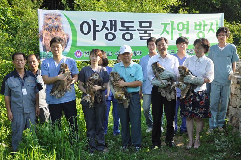 지난 2009년부터 야생동물 구조 관리를 통해 생태계 복원에 앞장서 온 전북야생동물구조관리센터(센터장 이해범 교수)가 천연기념물이자 멸종위기 야생동물 2급인 수리부엉이 5마리를 지난 7월 18일 방사했다.