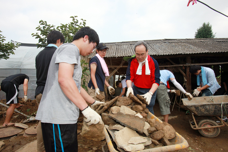 이날 대학 구성원들은 흙탕물로 가득찬 마을의 수로를 정비하고, 가가호호 방문하며 무너진 담벼락을 정돈하는 등 수해 복구에 구슬땀을 흘렸다.