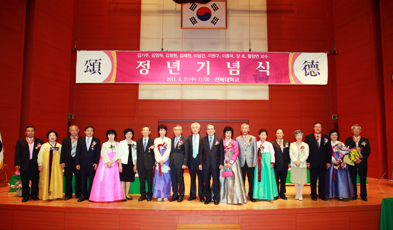 우리대학이 대학 발전과 후진양성을 위해 평생을 교단에서 보내고 8월말로 정년을 맞는 교원들에 대한 정년기념식을 31일 오전 11시 법학전문대학원 본관 가인홀에서 거행했다.