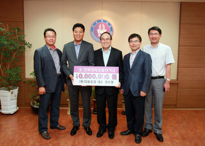 (유)다송조경 정수경 대표(조경학과 93학번)가 모교 후배들을 위한 장학금으로 써달라며 9월 7일 오후 4시 30분 우리대학에 발전기금 1천만 원을 기탁했다.