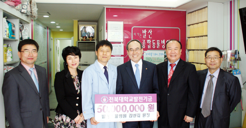 지난 9월 23일 오전, 서거석 총장은 부랴부랴 서울로 발걸음을 옮겼다. 서울 화곡동에서 발산동물병원을 운영하고 있는 강성길 원장(수의대 83학번)이 모교에 발전기금 5천만 원을 기탁하고 싶다는 뜻을 전해왔기 때문이다.