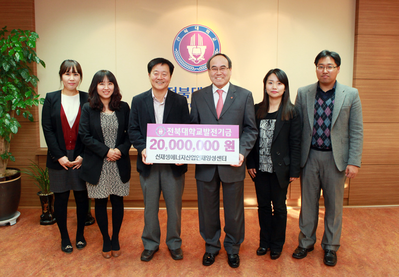 이날 기탁된 발전기금은 신재생에너지산업 인재양성센터가 최근 전라북도와 (재)전북테크노파크가 주관한 ‘2011 연구개발 성과 활성화 지원사업’에서 높은 취업률로 인재양성분야 우수상을 수상해 받은 인센티브로 교수들과 연구원들에게 지급된 포상금이다.