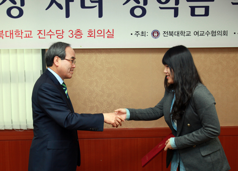 여교수협의회는 11월 23일 오전 11시 진수당 3층 회의실에서 한부모가정의 부모들과 학생들이 함께 참석한 가운데 장학금 수여식 및 간담회를 가졌다.