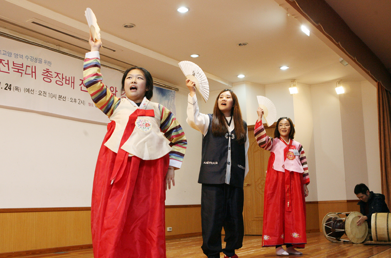 우리대학이 지역색을 살려 2008년 전국 최초로 설강한 교양필수과목인 ‘전통음악’ 수강생들이 지난 한 학기동안 배운 ‘판소리’와 ‘단소 실기’를 뽐내는 자리인 ‘제3회 총장배 전통음악 경연대회’가 펼쳐진 것.