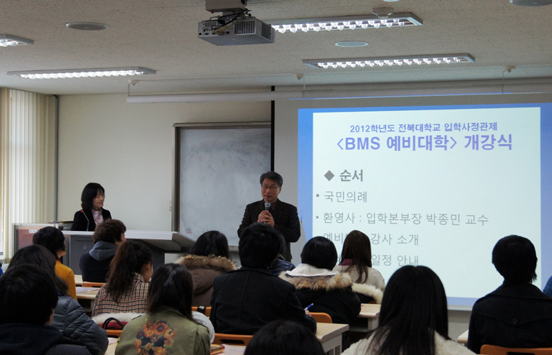 우리대학은 1월 4일 2012학년도 입학사정관 전형 신입생들을 대상으로 성공적인 대학 교육과정 이수 및 잠재능력 개발 촉진 등을 위한 ‘2012년 BMS(브릿지형 멘토링 스쿨) 예비대학’을 개강, 27일까지 3주 동안 운영한다.