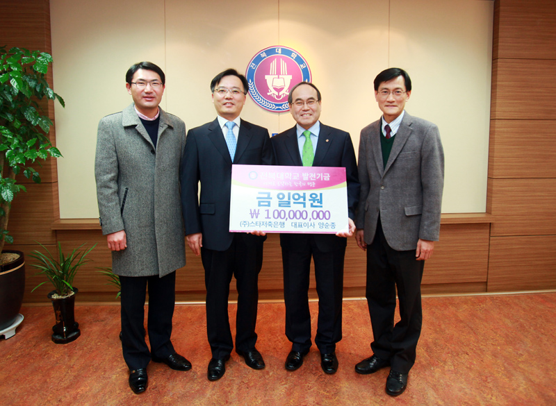 (주)스타저축은행 양순종 대표이사가 우리대학 학생들의 장학금으로 써달라며 17일 오후 2시 30분 1억 원을 기탁했다.