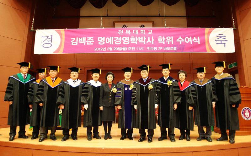 서거석 총장은 이날 학위수여식에서 “김백준 기획관께서는 우리나라 경제 발전에 크게 공헌했고, 우리대학이 한국을 대표하는 글로벌 명문대학으로 성장하기까지 큰 도움을 주신 분”이라며 “자랑스런 전북대 가족이 된 만큼 모교가 나날이 발전할 수 있도록 큰 힘이 되어주시기 바란다”고 말했다.