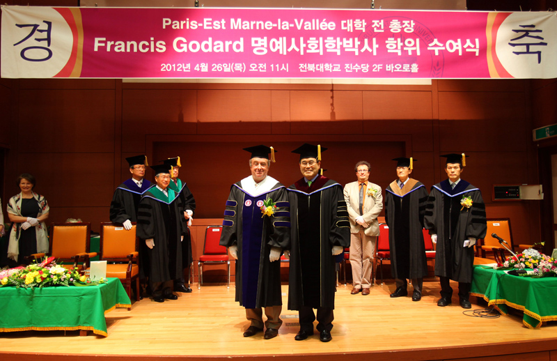 우리대학이 4월 26일 프랑스 파리 12대학과 마른라발레대학이 통합하여 만들어진 파리 에스트대학의 프랑시스 고다르(Francis Godard) 총장에게 명예사회학박사 학위를 수여했다.