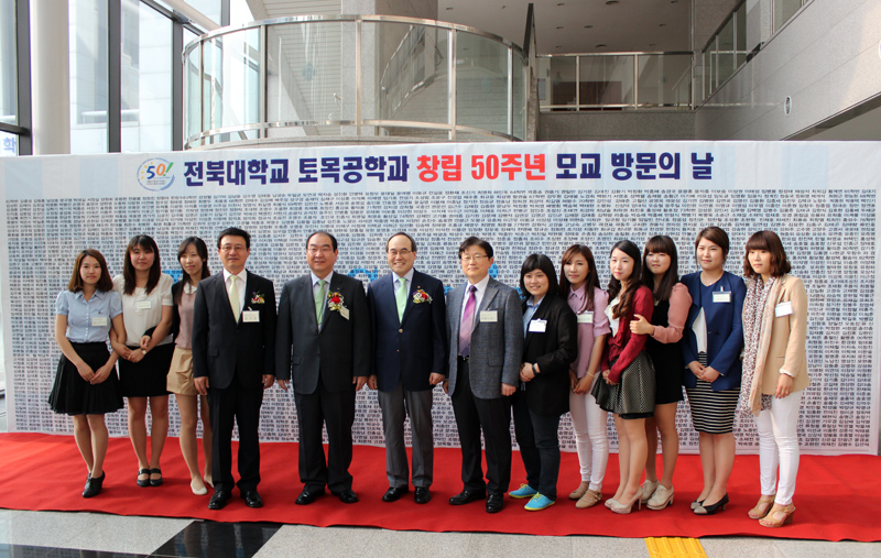 이날 행사에는 최홍규 토목공학과 총동문회장 등 동문 300여 명이 참석한 가운데 서거석 총장과 대한토목학회 전북지회 최길열 회장, 김성주 국회의원 당선자, 전라북도 라민섭 건설교통국장 등이 학과 설립 50주년을 축하했다.
