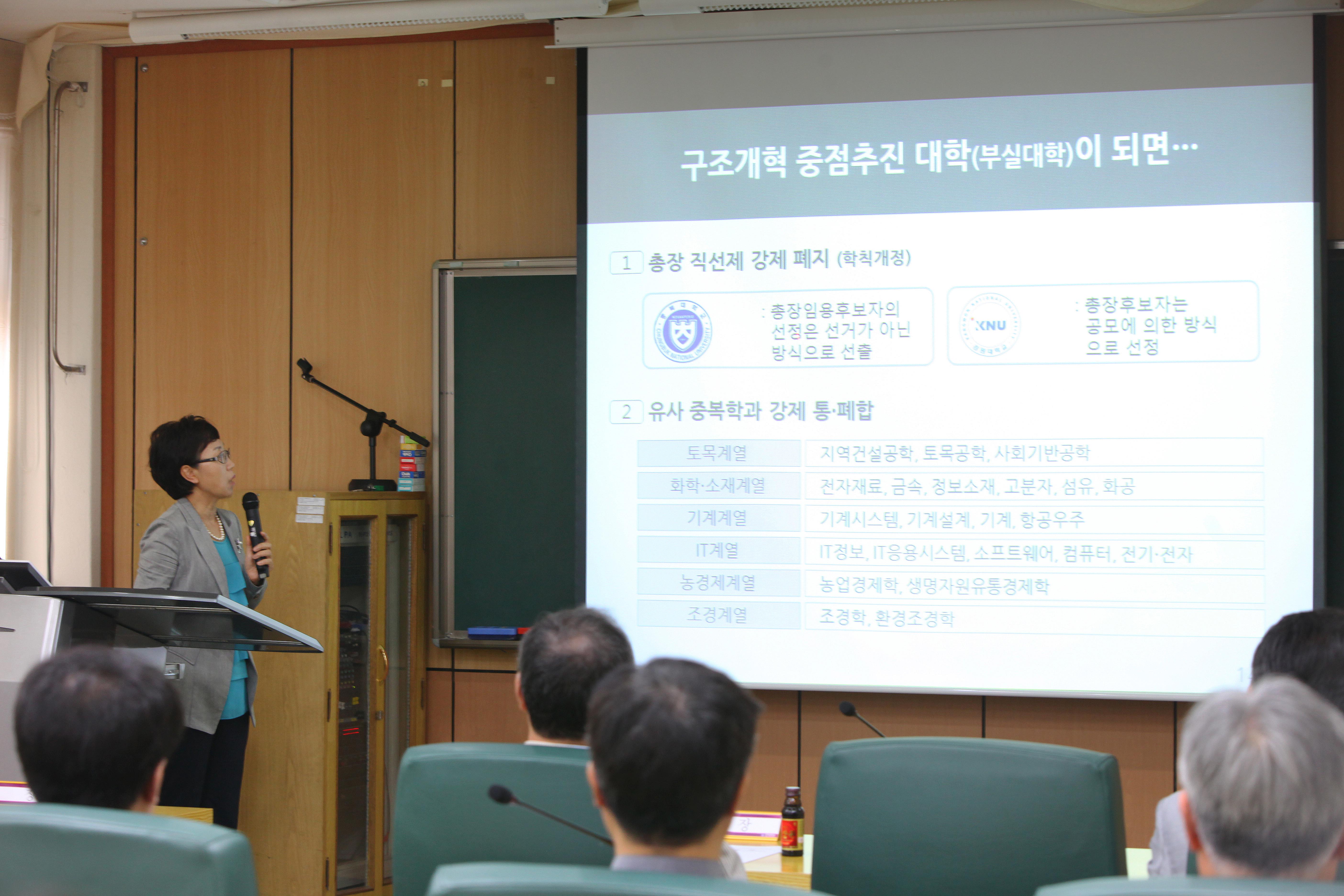 이번 설명회는 총장 직선제 존폐가 오는 9월 교과부의 국립대 구조개혁 중점추진대학 지정에 가장 중요한 핵심 지표로 떠오르고 있기 때문에 구성원들의 지혜를 모으기 위해 진행된 것.