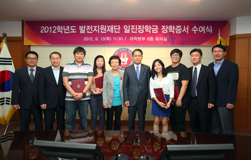 9월 13일 오전 11시 30분 대학본부에서 열린 장학금 전달식에는 2002년 10억 원의 장학기금을 기탁했던 일진그룹의 계열사인 일진제강 정희원 대표이사 등 관계자들이 참석해 학생들에게 직접 장학금을 전달했다.