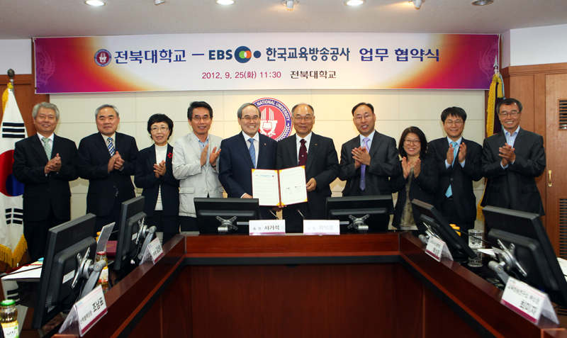우리대학과 EBS는 9월 25일 오전 11시 30분 본부 8층 회의실에서 서거석 총장과 곽덕훈 사장 등 양 기관 주요 관계자들이 참석한 가운데 협약식을 갖고 교육콘텐츠 제작 및 노하우 공유에 나서기로 했다.