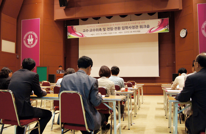 우리대학은 2013학년도 입학사정관 전형 1단계 평가에 참여하게 될 전임 및 교수위촉입학사정관 등 68명의 평가위원들을 대상으로 4일과 5일 양일간 전문성 강화를 위한 워크숍을 실시했다.