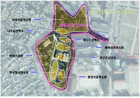 우리대학 익산캠퍼스에 대학과 시민이 소통할 수 있는 수목원 및 식물원 등의 녹색 테마 공원이 조성된다.
