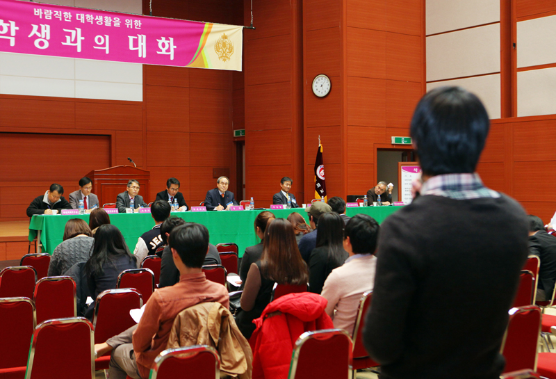 이날 학생들은 스터디룸 확충을 비롯해 신축 도서관 운영 계획, 취업동아리 지원과 활성화 방안, 해외봉사 및 글로벌리더프로젝트 질 제고 등 학생 교육 경쟁력 제고와 관련해 다양한 건의가 이뤄졌고, 대학 본부 역시 교육을 위해 투자를 아끼지 않겠다고 화답해 큰 호응을 얻었다.