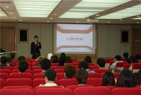 ‘LGenius Program’이란 LG디스플레이가 미래 기술을 선도할 R&D 전문가 양성을 위해 공과대학 전기전자, 기계 계열에서 우수한 학부 3학년 학생을 선발, 장학금 전액을 지원해 대학과 함께 이론과 실무를 겸비한 현장 맞춤형 교육을 실시한 뒤 졸업생을 100% 채용하는 일종의 취업 연계형 프로그램.