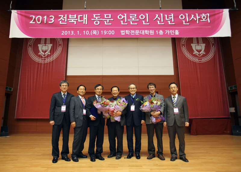 또한 지난 한 해 동안 언론계를 빛낸 동문에게 주는 ‘전북대 동문언론인상’ 시상식에서는 조상진 전북일보 논설위원 겸 선임기자(법학 75학번)와 최동성 전북일보 총무국장 겸 논설위원(행정학 78학번), 홍수기 YTN 전주지국장(행정학 75학번) 등이 수상의 영예를 안았다.